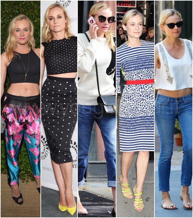 Nella vita di tutti i giorni lo stile di Diane cambia completamente e diventa casual e chic. Diane sfoggia sempre gli ultimi trend del momento, ma mai eccedendo con look esagerati o volgari. Uno dei must have del momento di cui va matta l’attrice sono i boyfriend jeans, i jeans ampi e dal taglio maschile. Li indossa spesso, abbinandoli sia a camicie dal taglio classico, che a top più aderenti e femminili. La bella tedesca ama anche i crop top, da indossare con i jeans, gli shorts oppure con gonne midi.