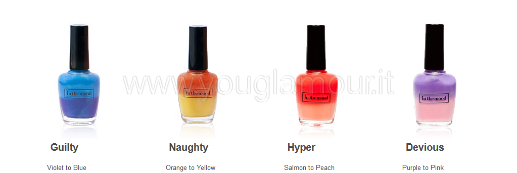 Il marchio canadese In the mood invece, è applicabile anche sulle unghie naturali, basta applicare due strati, e le possibilità di decoro sono modulabili: immergendo le mani in acqua solo per metà si può realizzare l’effetto sfumatura.