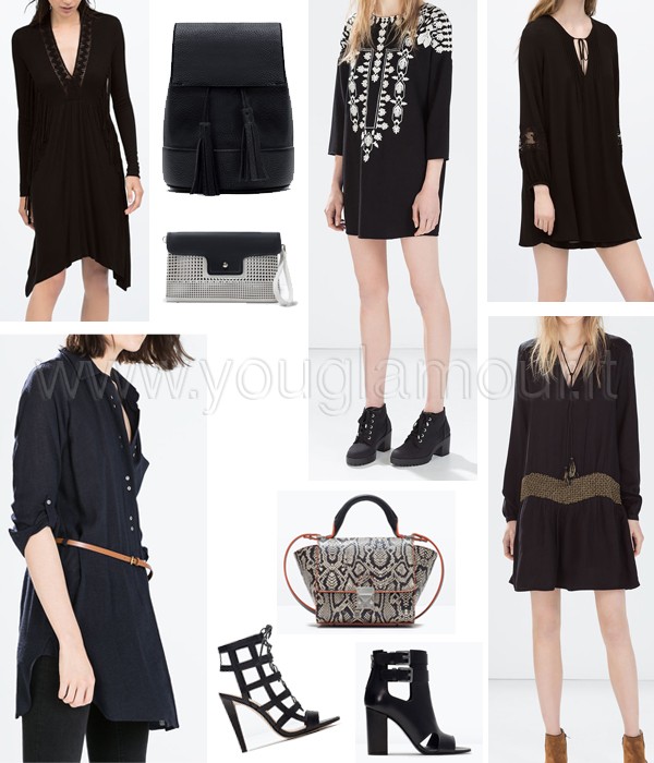 Zara ce li propone in diverse fantasie e nel classico nero, presentando una molteplice varietà di dettagli e lunghezze, per accontentare tutte. Tra i disegni, di grande tendenza sono ancora i fiori e le micro texture, da scegliere su fondo chiarissimo o su colori accesi.